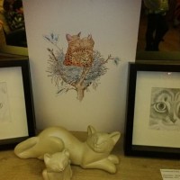 Также в ходе выставки прошла благотворительная лотерея, призовыми лотами которой стали предметы декора, украшения, авторские игрушки и сувениры с изображениями котов. Отличные книжки для маленьких читателей и их родителей предоставило нам в качестве призовых лотов издательство "Мелик-Пашаев", чудесные броши-котики подарила дизайнер Екатерина Шапиро, мягкие игрушки от Т.Оробец и С.Кравцовой радовали и взрослых, и детей. Прекрасным подарком стало и предоставленное нам издательством "Махаон" знаменитое "Полное собрание котов", с дарственной подписью автора - Андрея Усачева. И даже угощение для гостей вечера - волшебное "котиковое" печенье от Кати Карасевой - было в тему.