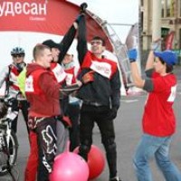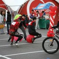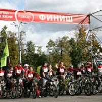 Помимо забега из Лужников в этот день стартовало 15 велосипедистов. Совершив круг по Садовому кольцу, они вернулись в Лужники. Периодически по мере продвижения велосипедистов по Садовому кольцу совершались прямые включения на экран на сцене в Лужниках.