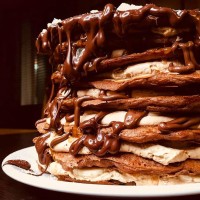 Друзья благотворительного фонда кафе «Тапки» выставляют на аукцион большой блинный торт, средства от продажи которого пойдут на помощь больным детям с врождёнными пороками сердца благотворительного фонда "Детские сердца"