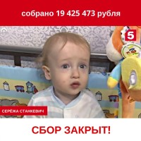 7 сентября «День добрых дел» на «Пятом канале» был посвящен нашему подопечному – Сереже Станкевичу. У годовалого ребенка тяжелейший порок сердца. Энергии ребенка хватает только на то, чтобы разбросать игрушки. И это не детские капризы. Поднять с пола даже самую любимую игрушку мальчик физически не может. У ребёнка сильная кислородная недостаточность. Требуется срочная операция, но ни один кардиохирург в России не берется ее делать. Лишь один кардиохирург из Америки, специализирующий на таких операциях, дал положительный ответ. Счет на лечение огромный – 136 787 долларов США, это более 8 миллионов рублей. Но мы верили, что в этом мире нет ничего невозможного и не ошиблись! Всего за один день вы прислали на лечение ребёнка даже не 8, а 19 425 473 рубля! Спасибо за ваши СМС! Спасибо за ваши репосты! Вы подарили семье самое главное – надежду! Совсем скоро Серёже предстоит долгий перелет в Америку, сложная операция и восстановление. Мы будем следить за его историей. И обязательно расскажем вам о самочувствии после операции.