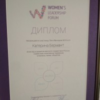 22 мая 2018 года Катя Бермант на Майском Women's Leadership Forum получила диплом за вклад в развитие женского лидерства в России, содействие позитивным переменам в бизнесе, семье, обществе.